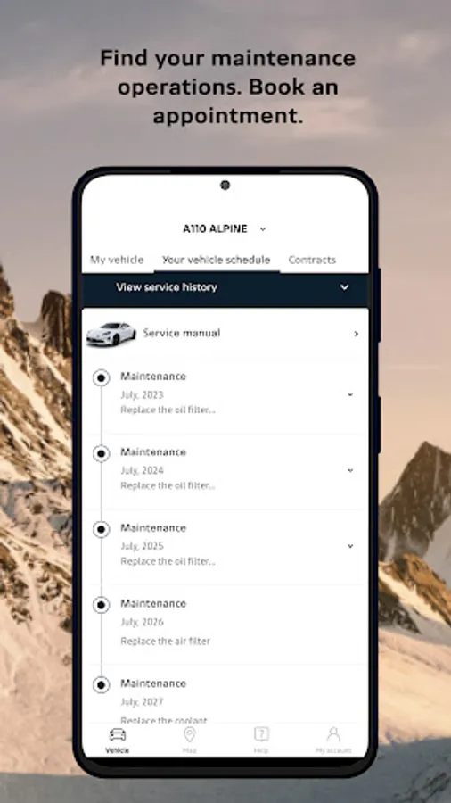 - Stay informed about every maintenance key moments by adding your vehicle to your account