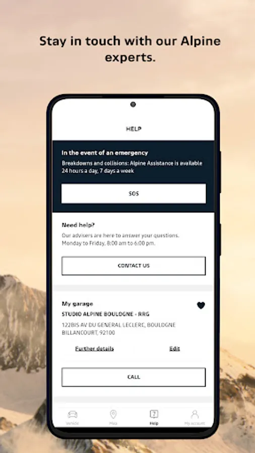 - Contact the assistance directly from the app
