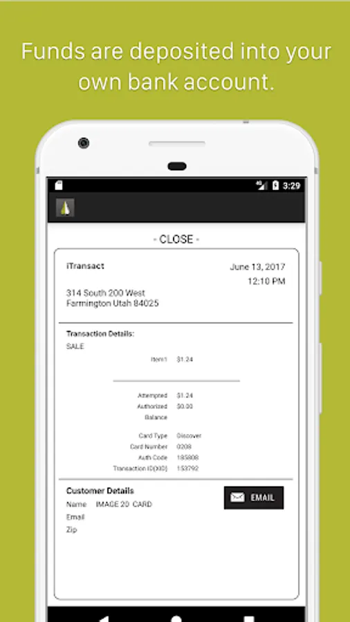 • Full point-of-sale features such as payments, voids, refunds, electronic receipts, and full transaction history.