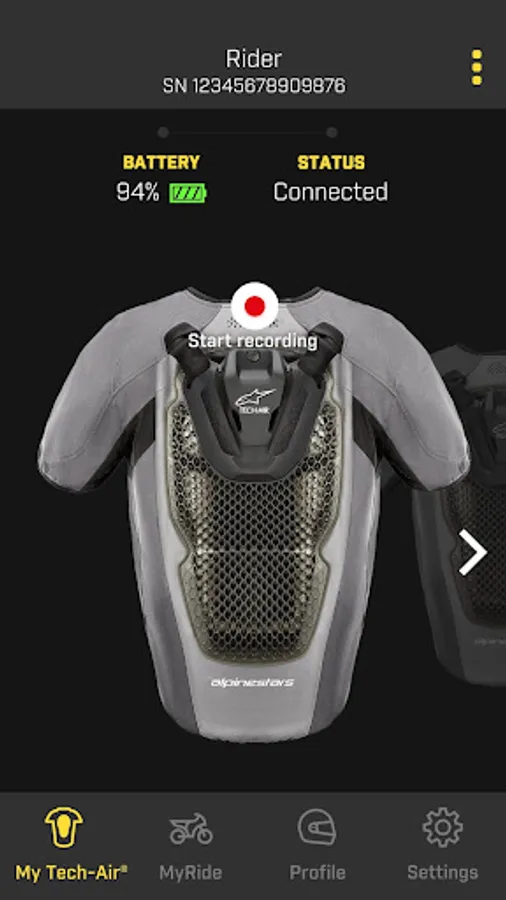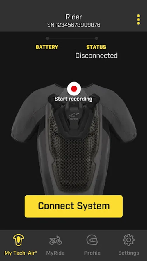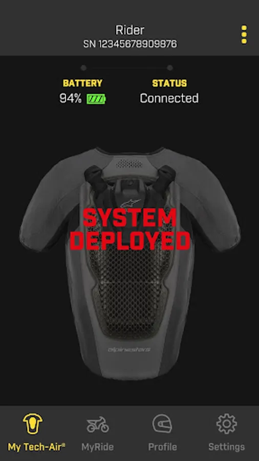 Packed with a variety of useful features, the App lets you easily register your Tech-Air® 5 Airbag System and monitor its status and battery life, as well as tracking the details of your ride. The App uses Bluetooth Connectivity to access the System’s data. Using the MyRide feature, riders can record location and speed continuously during a ride. Relive your ride and visualize your average and top speeds at any point along the route by zooming in on the map. MyRide gives motorcyclists the ability to record unlimited motorcycle rides and build up a complete library of individual trips, so you can easily retrace your trips and remember the great riding moments.
