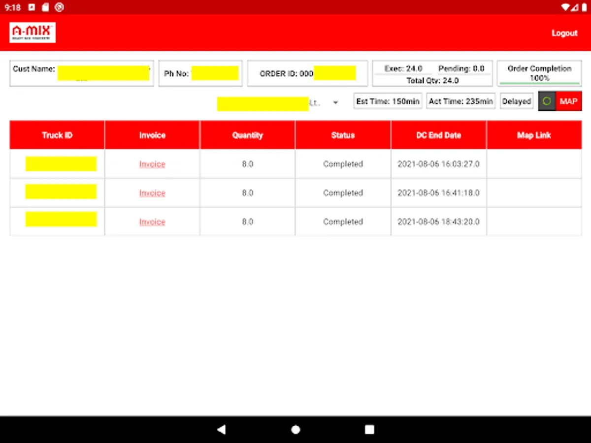 A-MIX is part of Arunachala Logistics Pvt Ltd, a leading logistics service provider in India. This app can be used by employee of AMIX & all AMIX Customers. Customers can view their past/ongoing/future Orders, track LIVE truck locations & view/download Invoices.