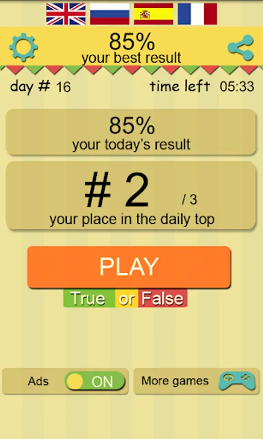 with the world - and show off your results to your favorite social networks! Answer all the questions correctly and become the NUMBER ONE.