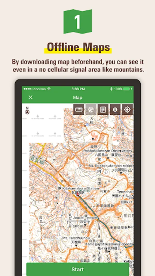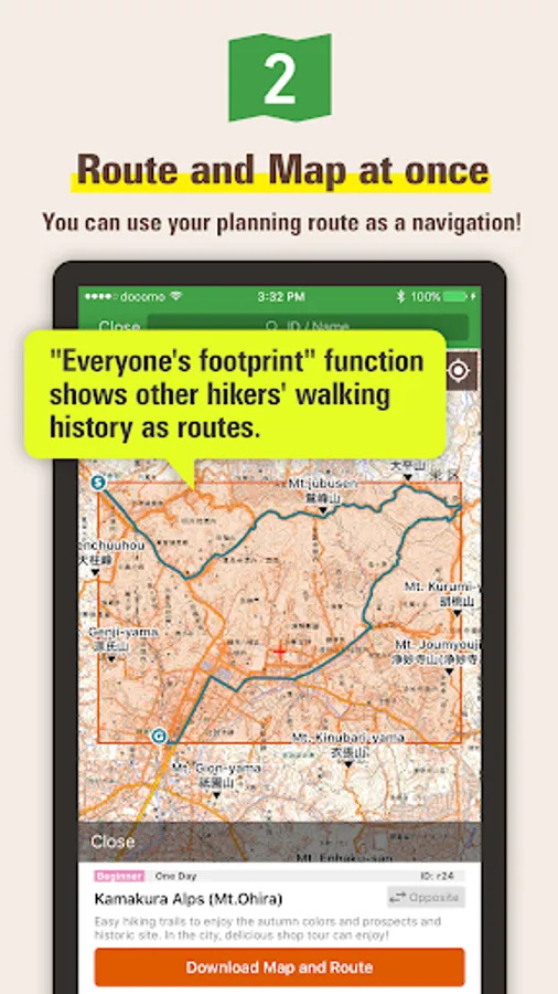 You can also download routes and maps from a GPX file which you can get from any outdoor SNS like Yamareco.com.