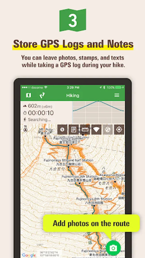 3) Store GPS logs while hiking