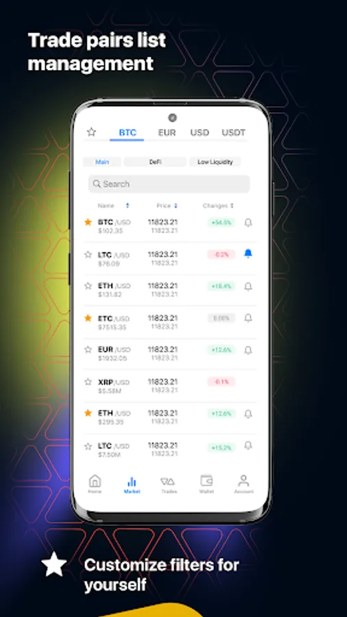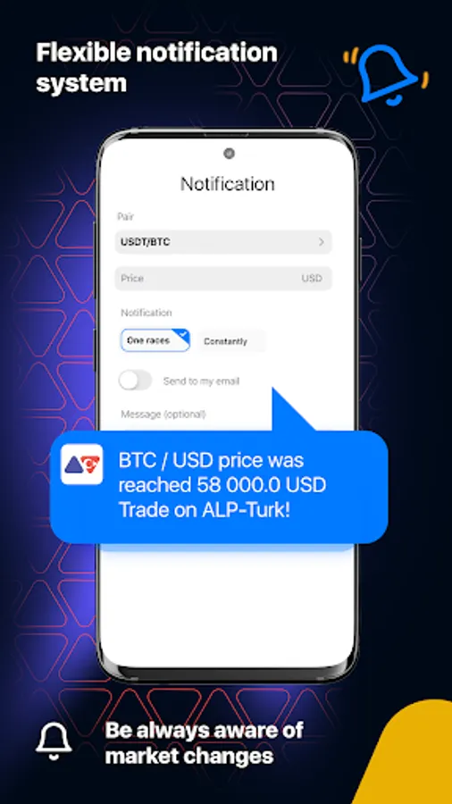 There are over 30 trading pairs available on ALP Turk, as well as real-time ticker tracking across all markets. BTC, ETH, TRX, LTC, SHIB, FLOKI, DOGE, ADA, ZRX, ZHC and many other liquid coins are waiting for you! Also in the application you can customize the charts in a way that is convenient for you to analyze them. All this and much more is now in your smartphone. Trade without borders with ALP Turk!
