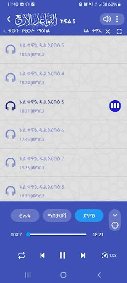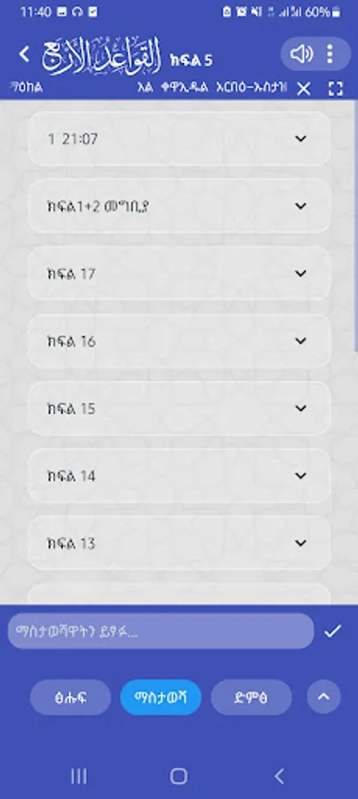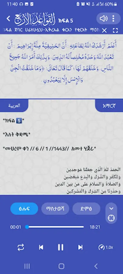 ይህ የሞባይል መተግበሪያ የቀዋኢዱል አርበዕ ሙሉ ደርስ አጠቃሎ ይዟል።