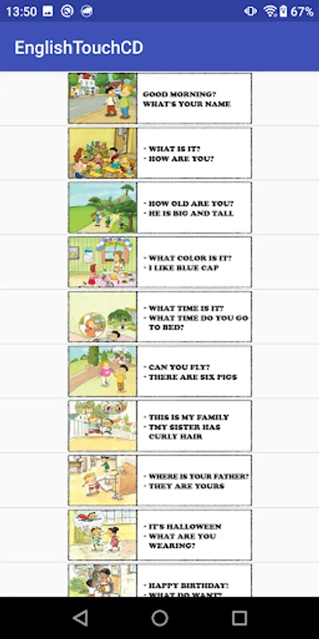 While listening to the sound source on the app, and by repeating after the sound source guide, touching the sentences of the story and imitating the sound