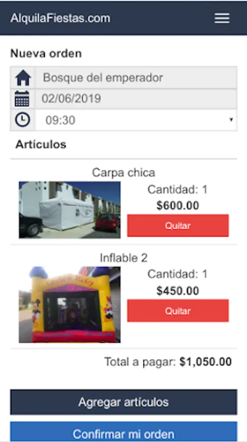 Application for the rental of chairs, tables, tents, jumpers and more ...