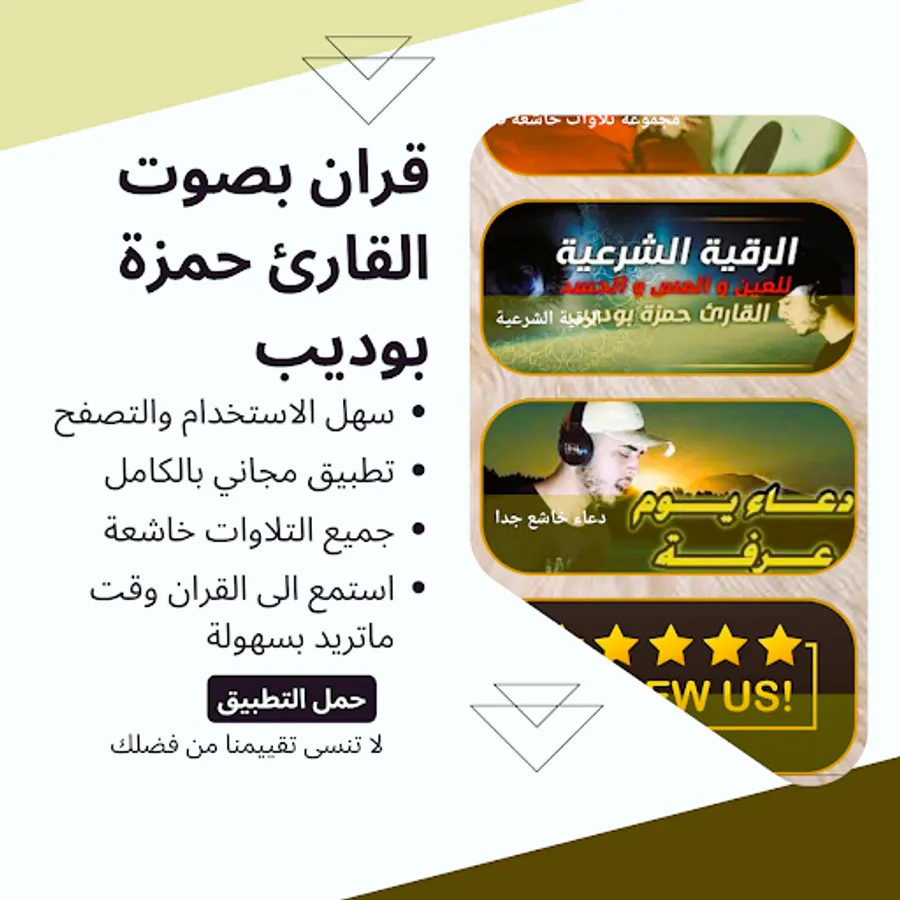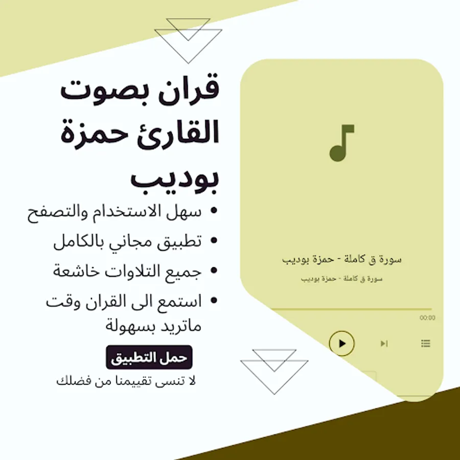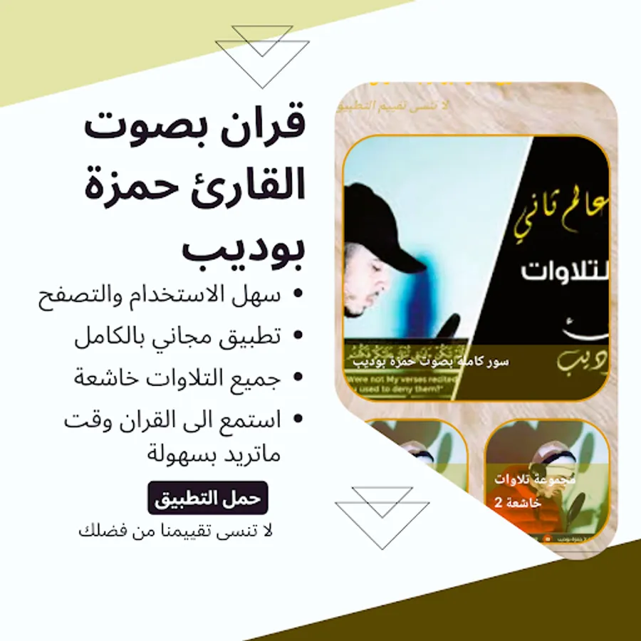 The Hamza Boudib application, the entire Qur’an without the net, allows you to hear the entire Holy Qur’an with the voice of Hamza Boudib without the net