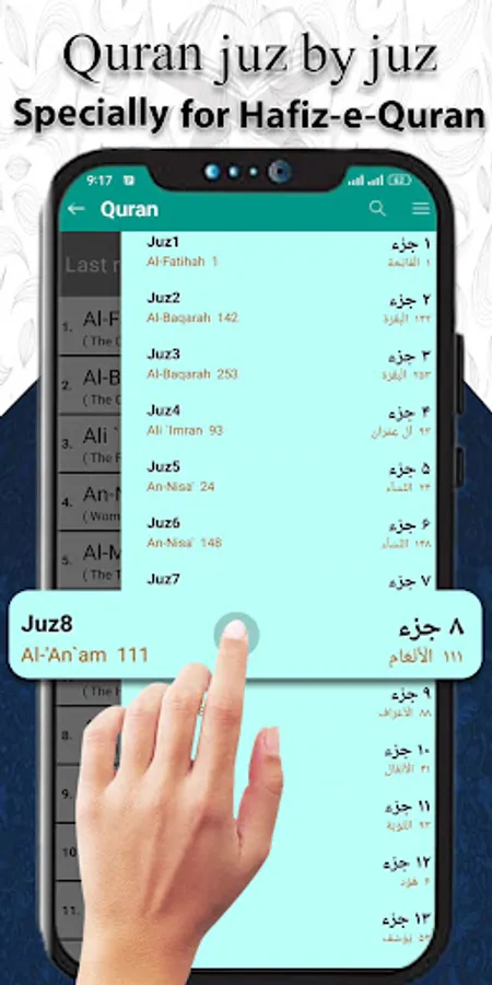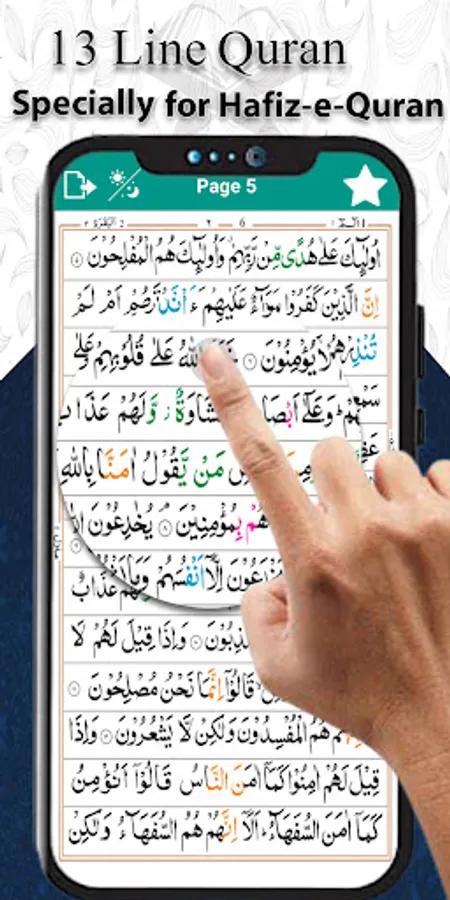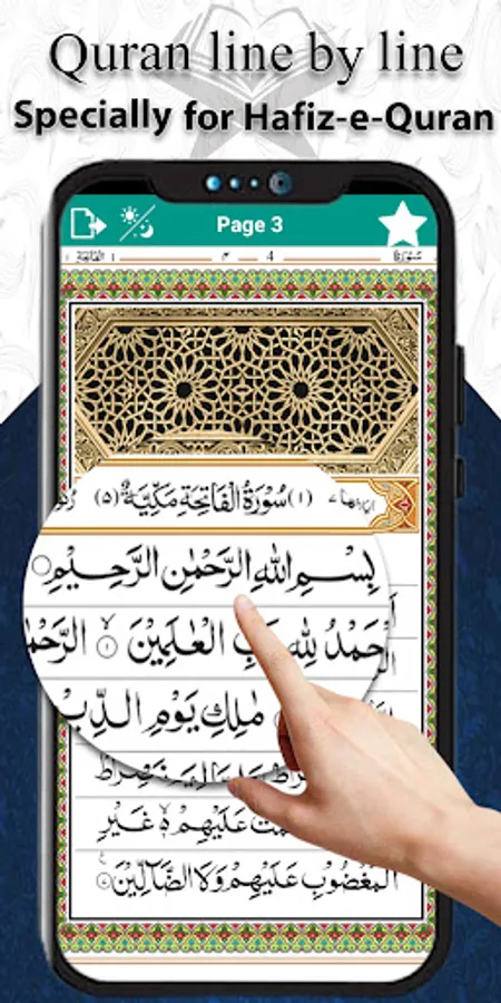 Al Quran Kareem 360 has the feature of reading Quran in 13 lines. This feature is specially for Hafiz-e-Quran. Day and Night mode also included in this feature. This feature makes the recitation easy for Hafiz. Search Surah and Pages in just few seconds. Easy to jump to go any page in Quran.
