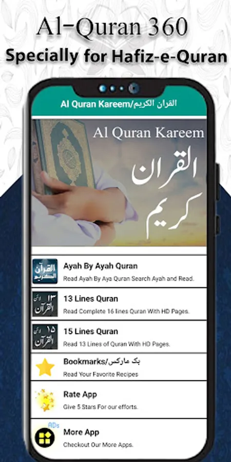 15 Line Quran script best and easy pages to read like real Quran. You can read Quran in 15 lines so that you can learn or Hifz Quran Easily. 15 Line Quran is made special for Hafiz which is helpful for quick learning. Al Quran Kareem 360 application include sura index, para or juzz index, goto page, bookmark feature, day & night feature etc.