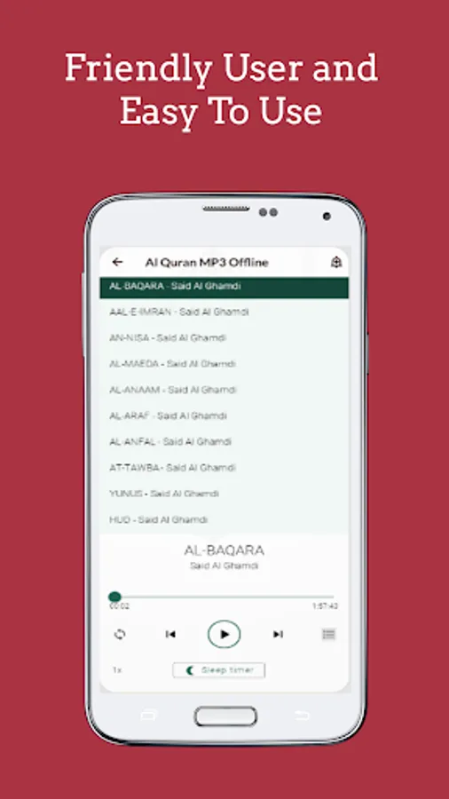 The interface of the Noble Qur'an program with the voice of Sheikh Saad Al Ghamdi is very simple, which allows you to use the program easily and comfortably. You will not experience any difficulties from downloading the program from the store to downloading the program to download the Noble Qur'an with the voice of the Al-Quran MP3 Offline, and use it to listen to the suras of the Noble Qur'an.