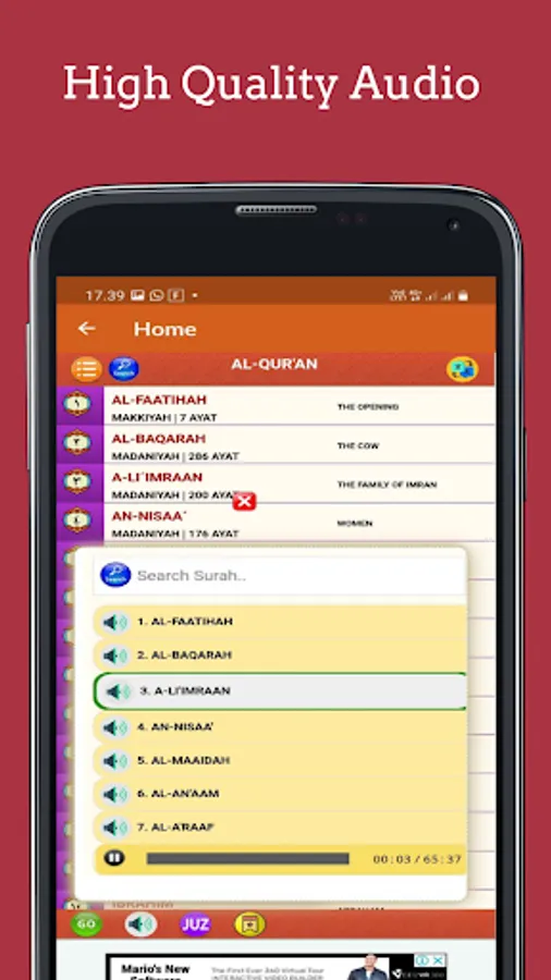 • Visit the store and search for the program (Al Quran Mp3 Offline)