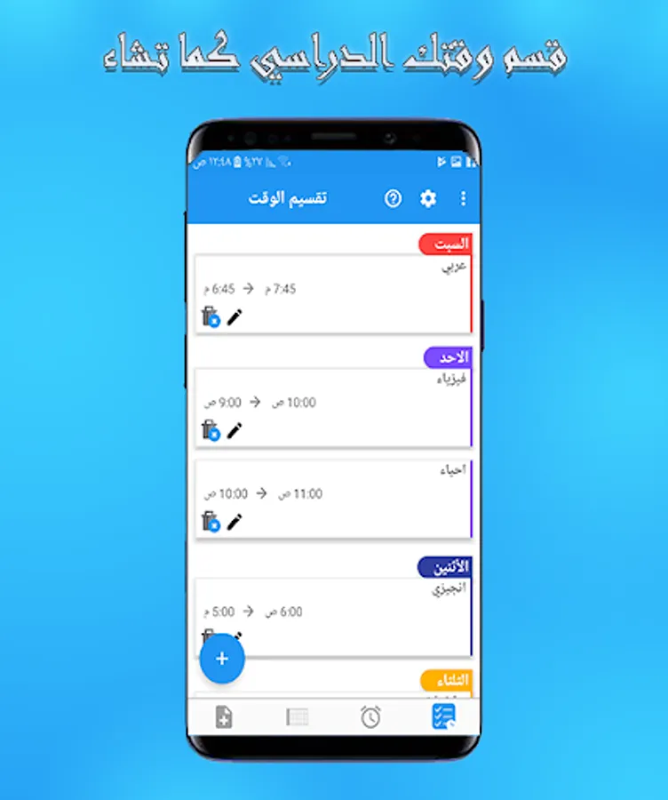 The Android app is an innovative and powerful application that aims to facilitate the organization and management of students' study schedules and improve the organization of their study time. This application has a set of features and advantages that make it a powerful tool for students in organizing their academic life.