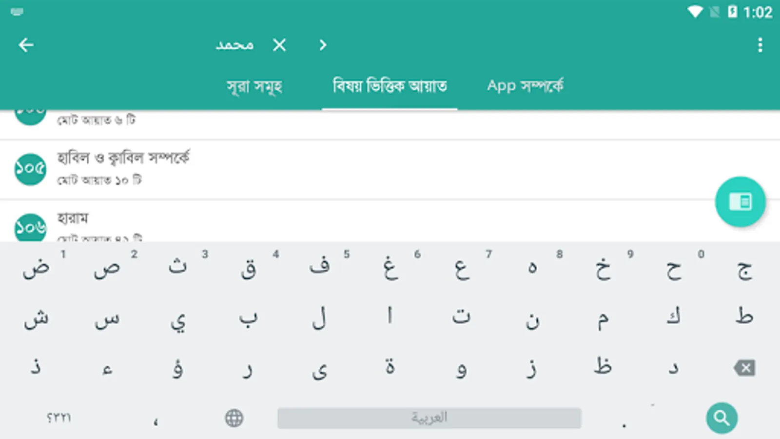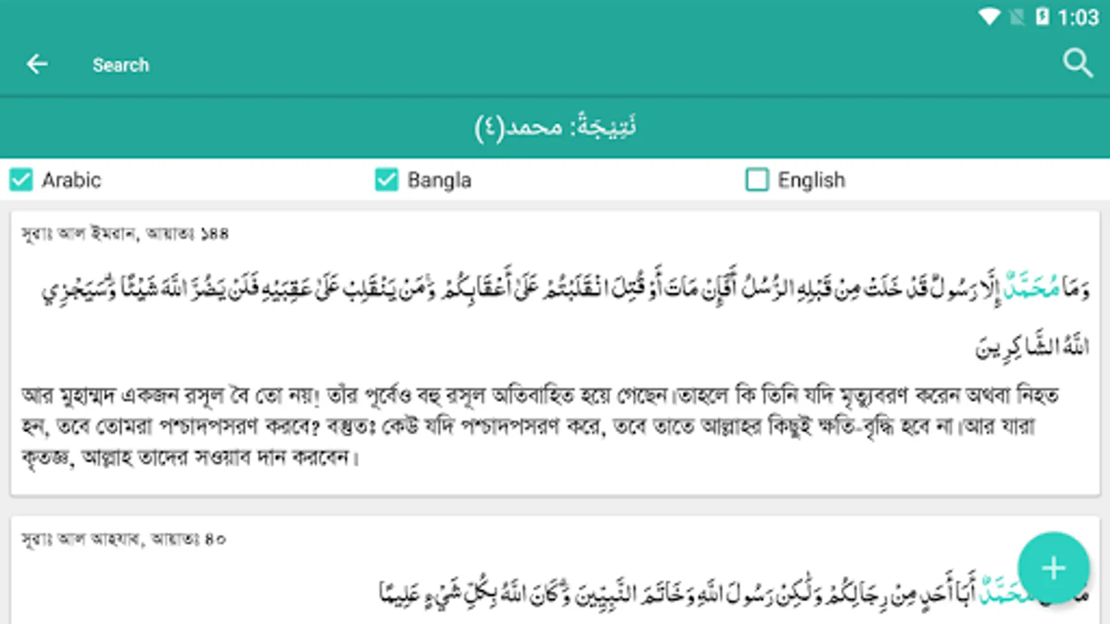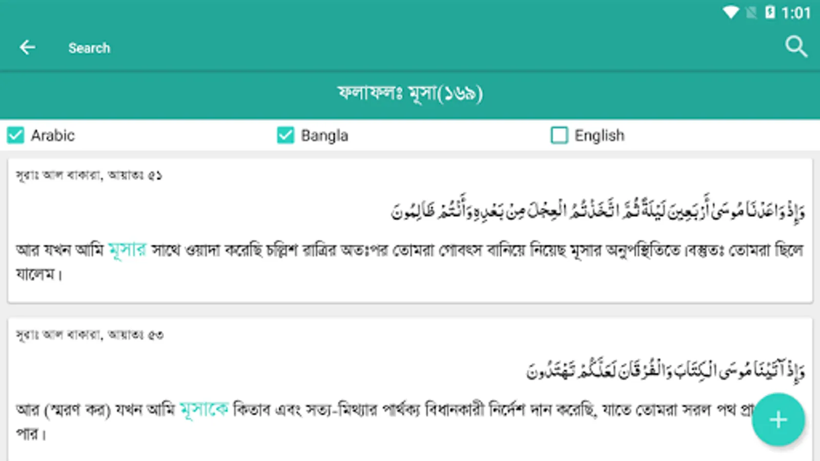 2. Arabic, Bengali, English, the language of searching in three languages. (You can search by typing any word or verse)