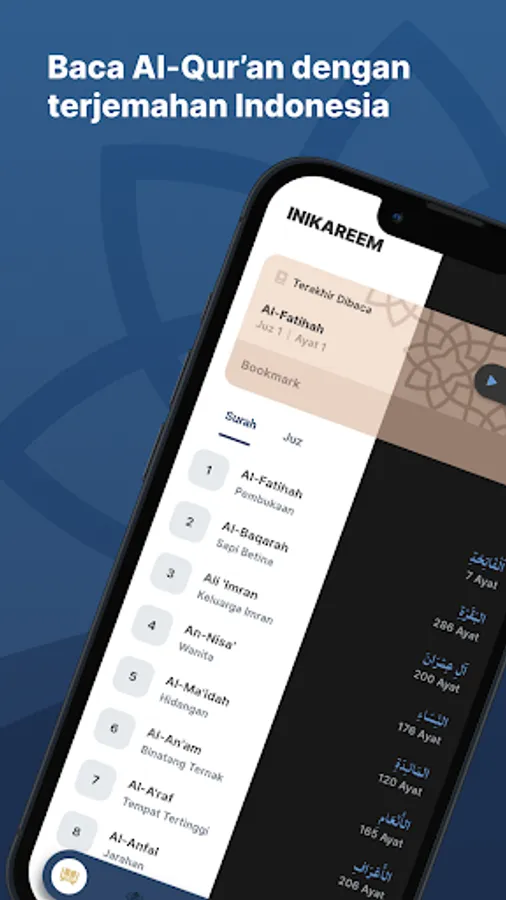 iniKareem is an Al-Qur'an & short speech application with Indonesian translation designed with simple and modern UI.