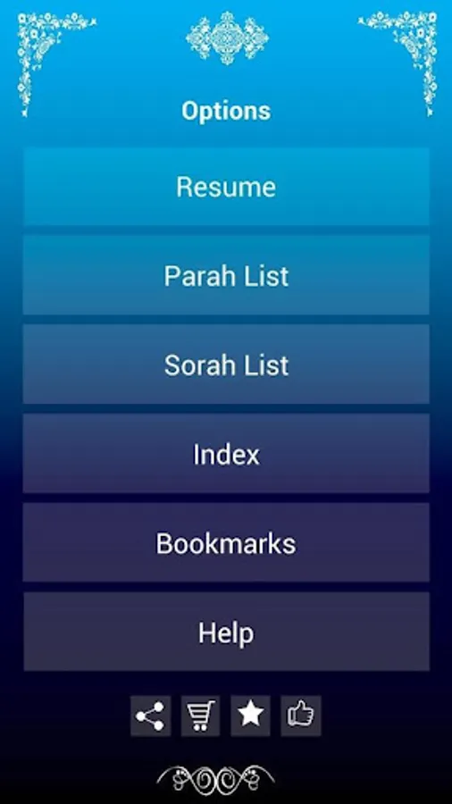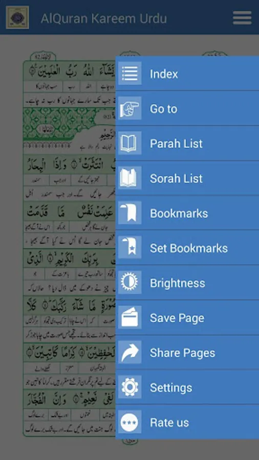 * Advanced navigation using Go to page number, Parah , Surah, Manzil and Sajda index helps to navigate easily.