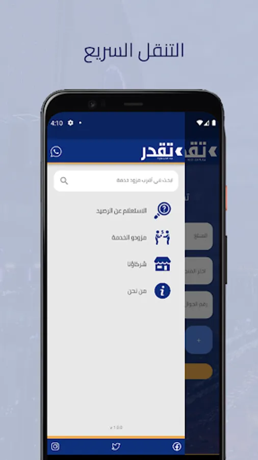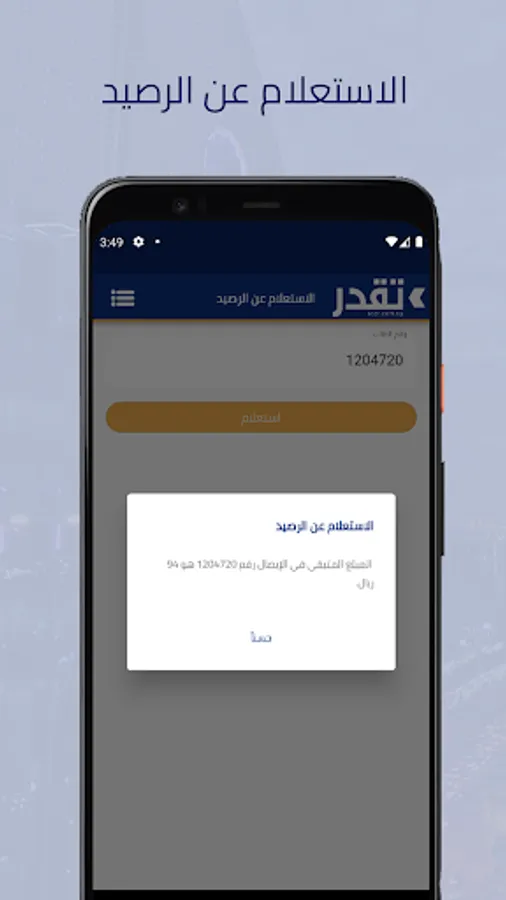 * The Taqdar application is characterized by a modern and easy-to-use design through which you see an interesting user experience, explaining to you the process of shopping through the approved stores in Taqdar through the order number that is issued through the service provider application in Taqdar, through which you can sense its compliance with the requirements of easy and secure electronic payment .