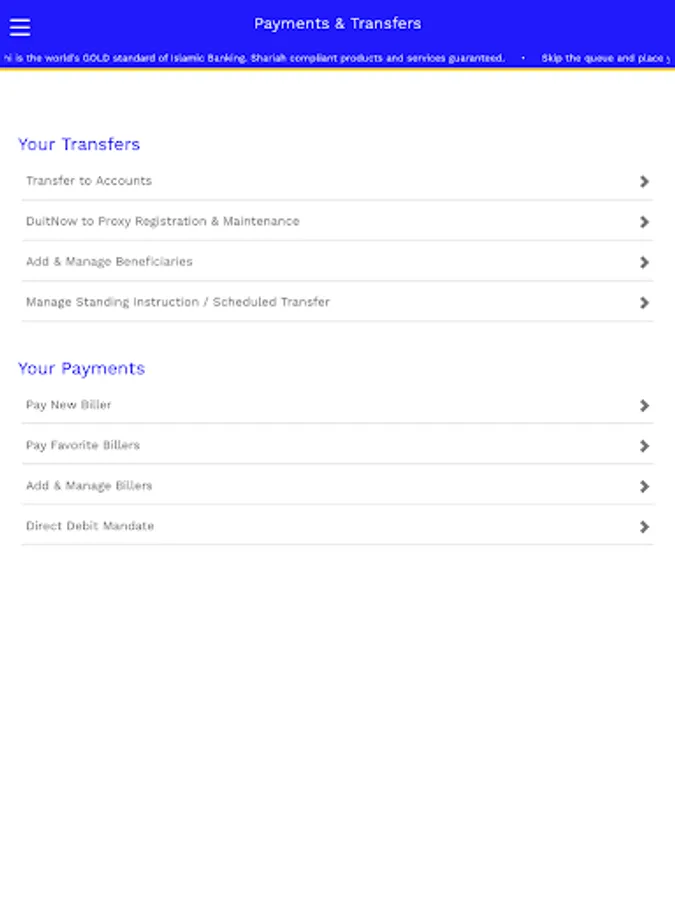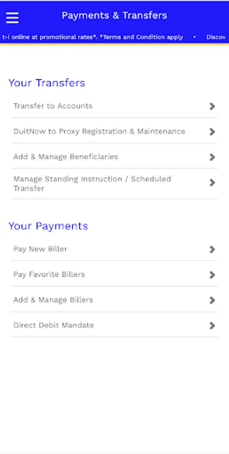 [+] Make bill payments, setup future payments / transfers and standing instructions