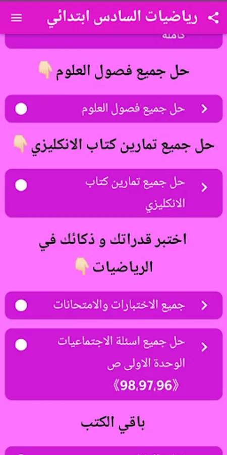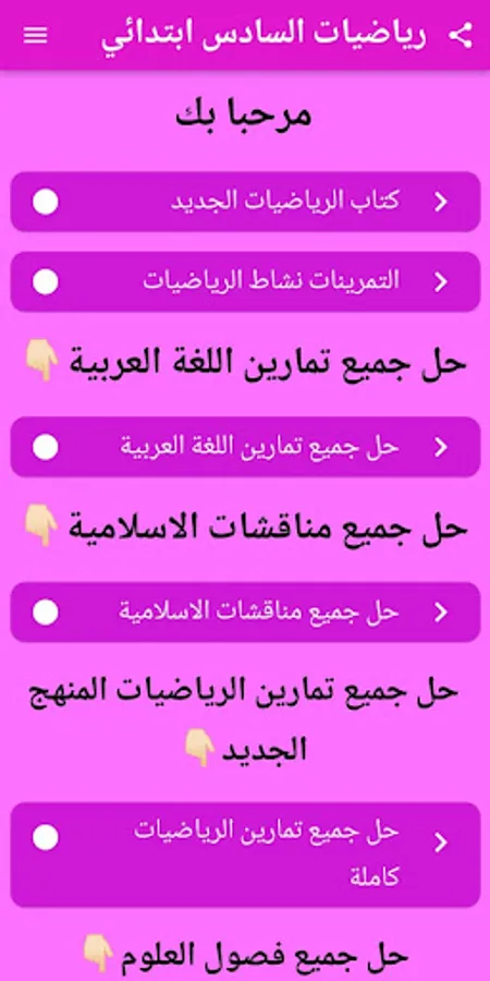 The sixth elementary mathematics application without the net contains a set of useful books such as the mathematics book and its activity and solved exercises and mathematics mlzma and solving the exercises of the first, second, third, fourth, fifth, sixth, seventh, eighth and the ninth all without the net