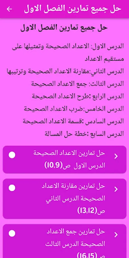 The sixth elementary mathematics application includes solving all the exercises of integers, comparing integers, adding, subtracting, multiplying and dividing their numbers, and the pre-test for the sixth grade mathematics book.