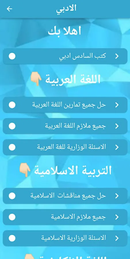 sixth aladadi mulazim wukutub includes almulazim wukutub a group of various different materials for sixth students such as physics, chemistry and biology, and students of biological, applied and literary sciences can benefit from this application in a large and wide way through their use