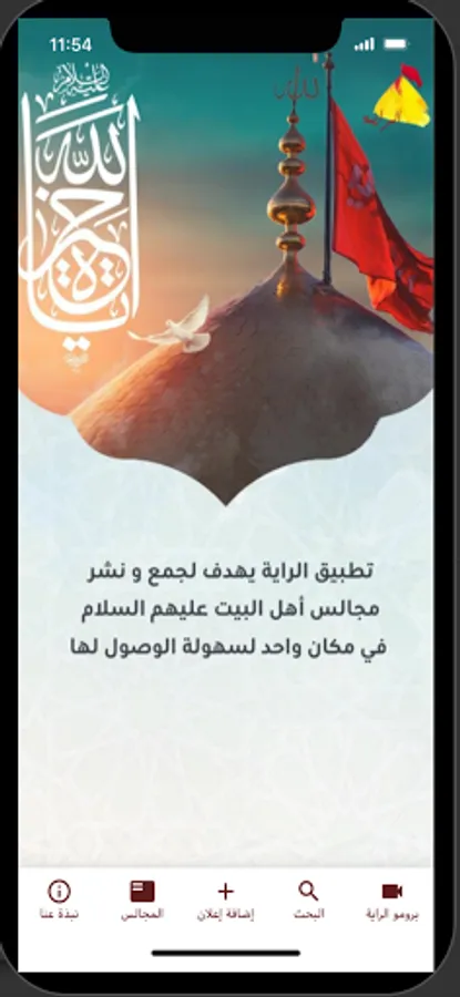 The flag application publishes the announcements of the Husseini councils and the events of the people of the house, peace be upon them, and its details, including the date and time, and the direct broadcast link, and collects them in one place to facilitate their access.