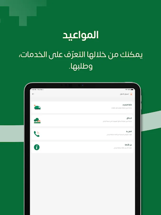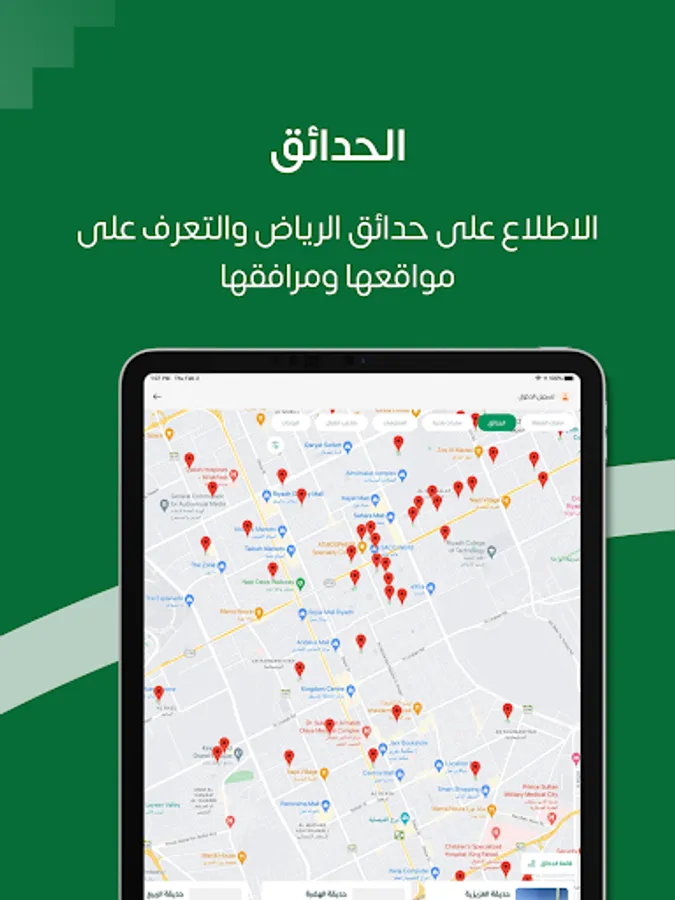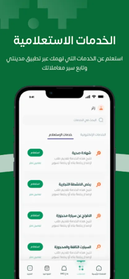 The Riyadh Municipality has developed the Madinaty application, which will be your window to the capital, Riyadh, as it provides you with a variety of electronic services that are designed to be closer to you, and you can access them with a smooth and safe experience.
