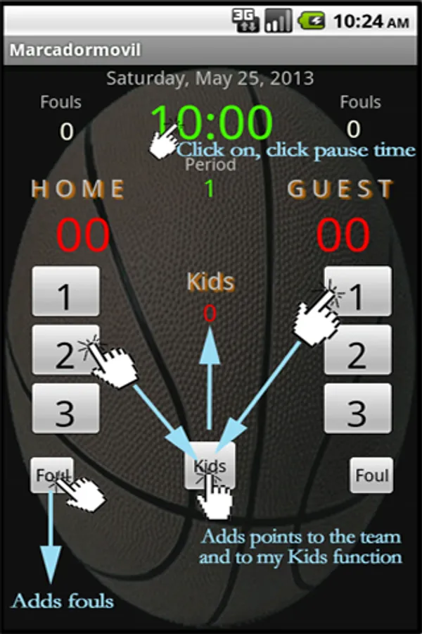You are tired of asking, in every game, what is the result of the match?. With this program you can score yourself the result of the basketball match of your children. It is simple, quick to learn and intuitive.