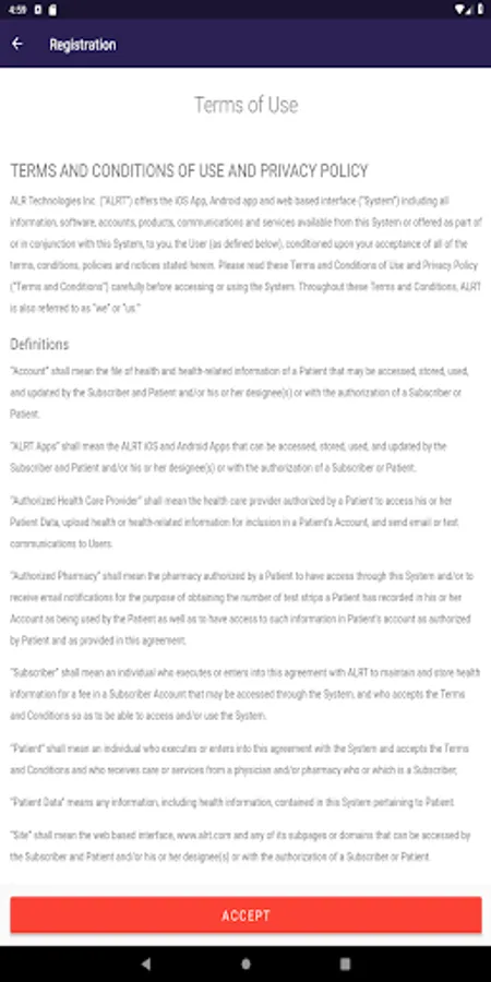 ALRT Diabetes Solution Mobile App is a simple, secured and easy to use uploading app where patients can upload their blood glucose data from their glucose meter device to the FDA-cleared ALRT Diabetes Management Platform. The app uses wireless technology to connect their glucose meter to the app via Bluetooth (Bluetooth 4.0 or higher). The app also sends out real time notification feedbacks regarding the predictive A1c of the user based from the user’s recent blood glucose data uploaded. ALRT pre-registered users can only use this app.