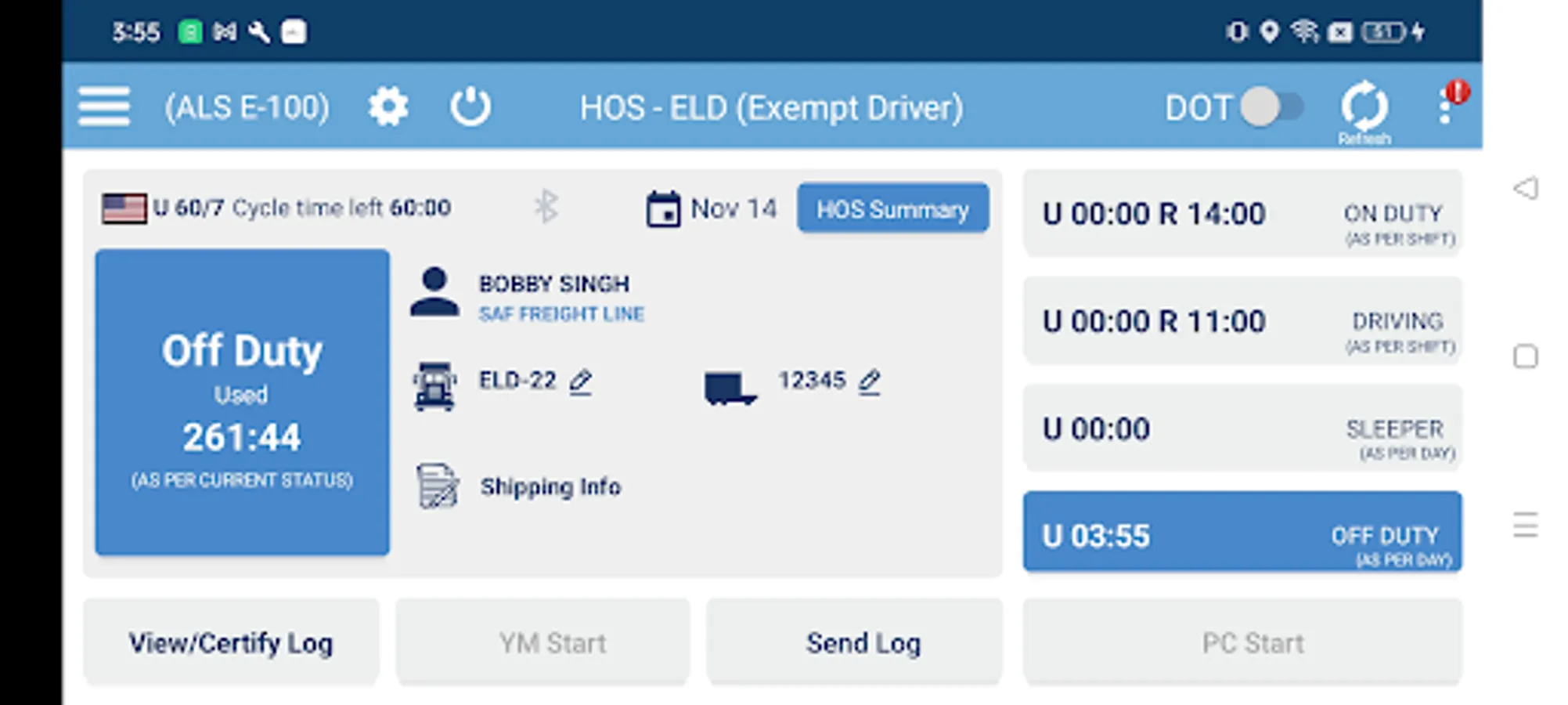 Arethos Logistics System (e-Log Book) makes it easy to keep your truck compliant while you focus on the road. Maintain daily logs of drivers, like their duty status, certified logs, PTI etc. Eld is reliable, affordable, and keeps you FMCSA and DOT compliant. It supports Canadian Federal Hours of Service (HOS) regulations. ALS Eld is a fully integrated hardware and software system that syncs with your vehicle's ECM using wired and wireless (Bluetooth) communication technology.
