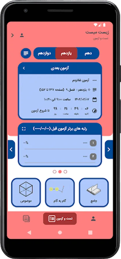 ✧ آزمون آنلاین برای همه به صورت رایگان قابل استفاده بوده اما آزمون های آفلاین که شامل آزمون های جامع، آزمون های گام به گام و آزمون های موضوعی است؛ در هر بخش آزمون های اولیه به صورت رایگان برای همه قابل استفاده بوده اما آزمون های بعدی تنها برای مشترکین قابل استفاده است