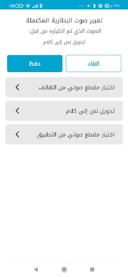 Speech when charging or the sound of fully charging the battery and text-to-speech conversion when the charger is connected is simply a tool that sounds an alert when the battery is fully charged, i.e. when the battery is full, and also in addition to sounding an alert sound when the charger is connected and the charger is disconnected and when the battery is weak, but In general, the most important thing is to emit the sound when the battery is full and fully charged because it preserves the safety of the phone battery from damage because leaving the phone connected to the charger for long periods causes it to be damaged. Moreover, it plays a sound when the battery charge increases by 10% or when the battery charge decreases 10% in order to make it easier for the user to know the battery charge. The importance of this feature is highlighted when the user is away from the phone, then the user can know the percentage of the phone’s charge without going to the phone, and the alert in general is of three types: