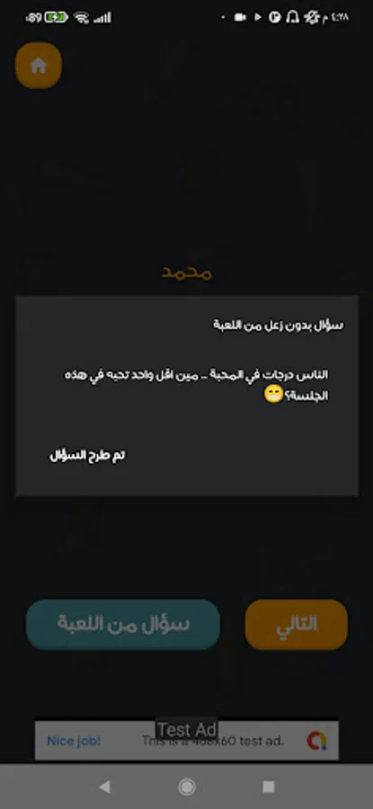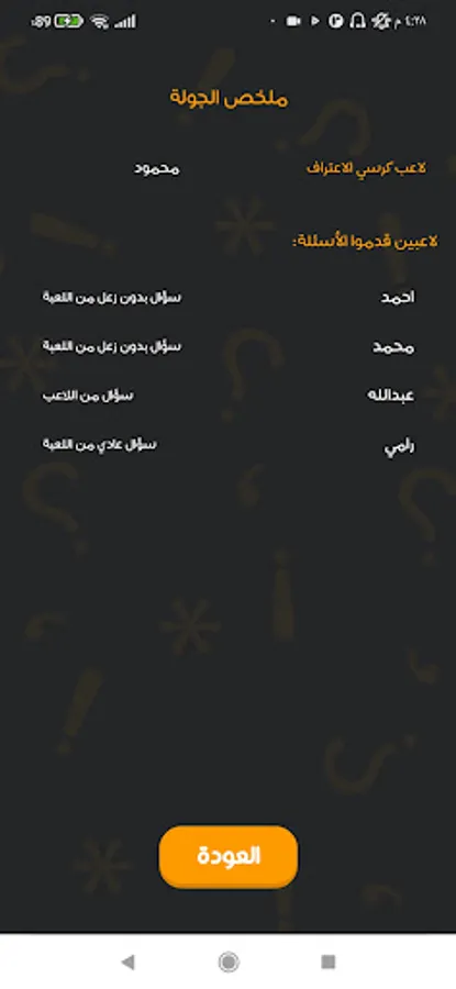 The game is a game of questions or as it is known as the “confessional chair” so that the choice is made randomly and whoever signs the choice must answer honestly the questions presented to him by the other players. The turn is on the players on a regular basis, and each player has only one question during each round, so it is his chance. It is advised that he not rush to ask the question and think carefully about choosing the appropriate question.. In the event that any question comes to the player’s mind, the game presents you with questions, and the questions are classified between ordinary questions and questions Embarrassing 'without getting upset'... After all the players finish asking questions, the round ends and a new round begins