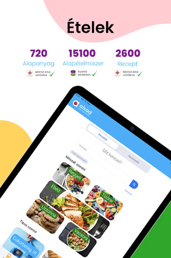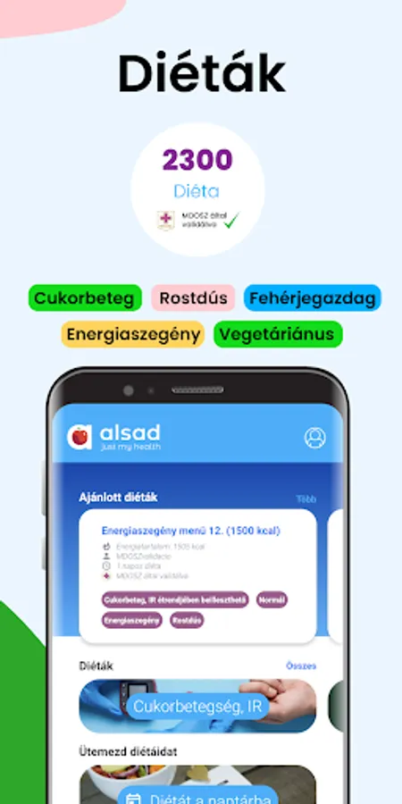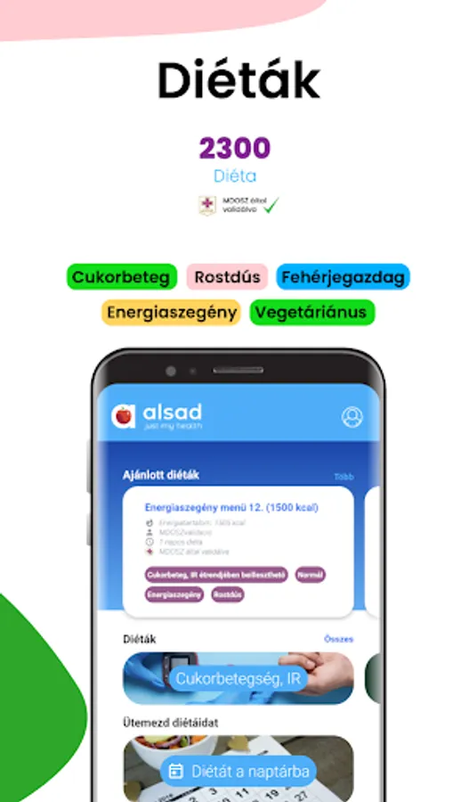 The authenticity of the ALSAD application is ensured by the fact that the contents of the raw material, recipe and diet menus have been verified by domestic experts, the National Association of Hungarian Dietitians (MDOSZ).