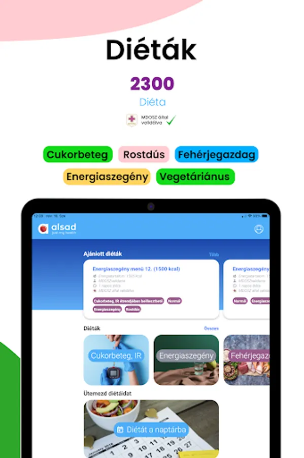 - 2300+ complete daily diets professionally recognized by MDOSZ, with nutritional value data