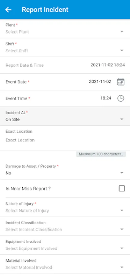 -- Record and maintain the details of Incident and Near-miss, which happen in Field Area.