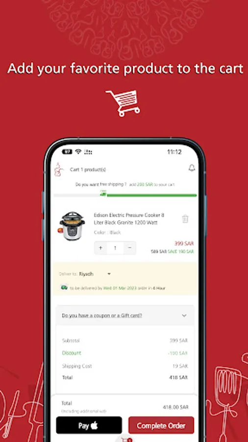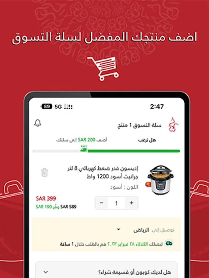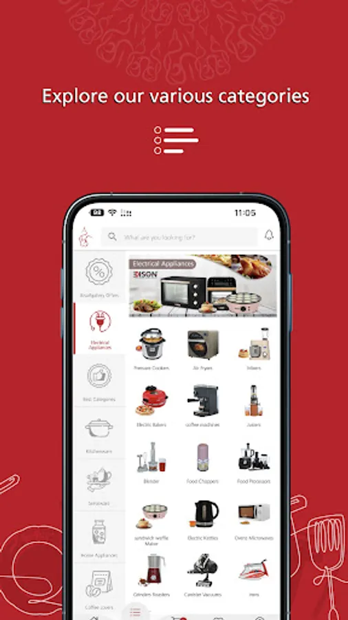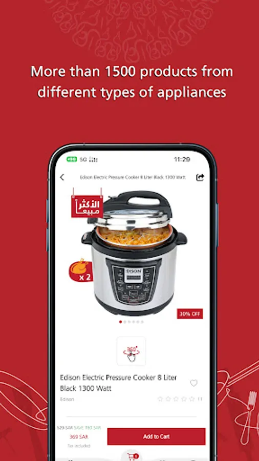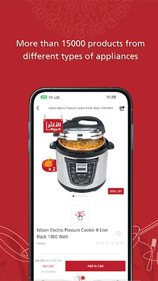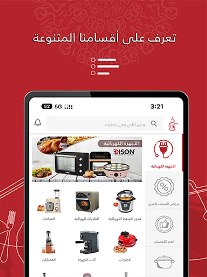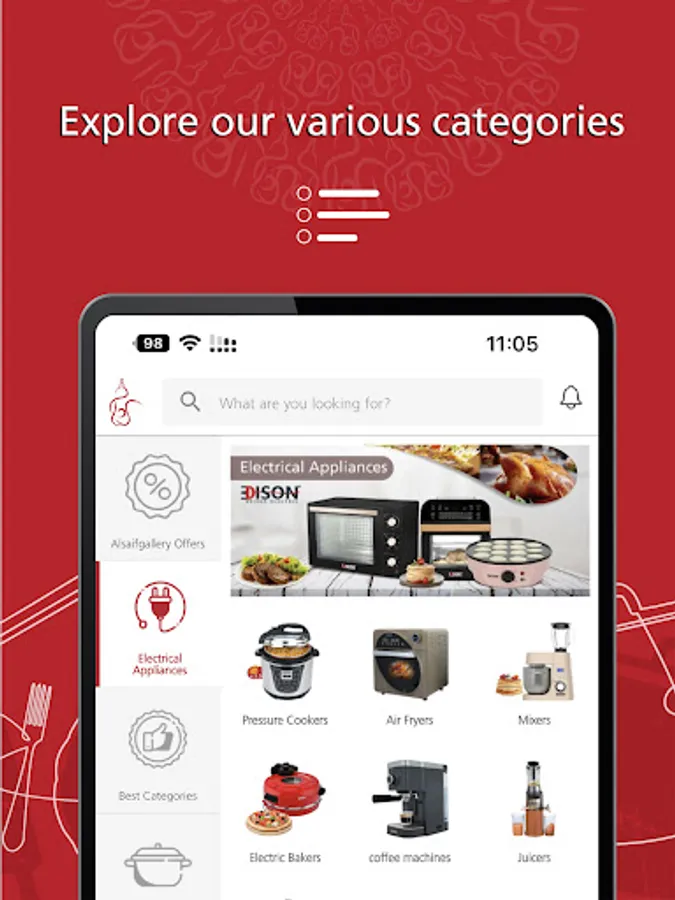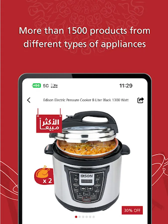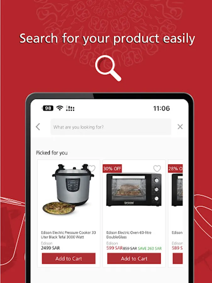 · Appliances: Pressure cookers, Airfryers, mixers, and ovens from Saudi Arabia’s top brand Edison and other high-quality international brands.
