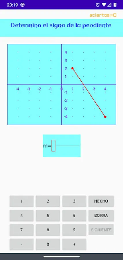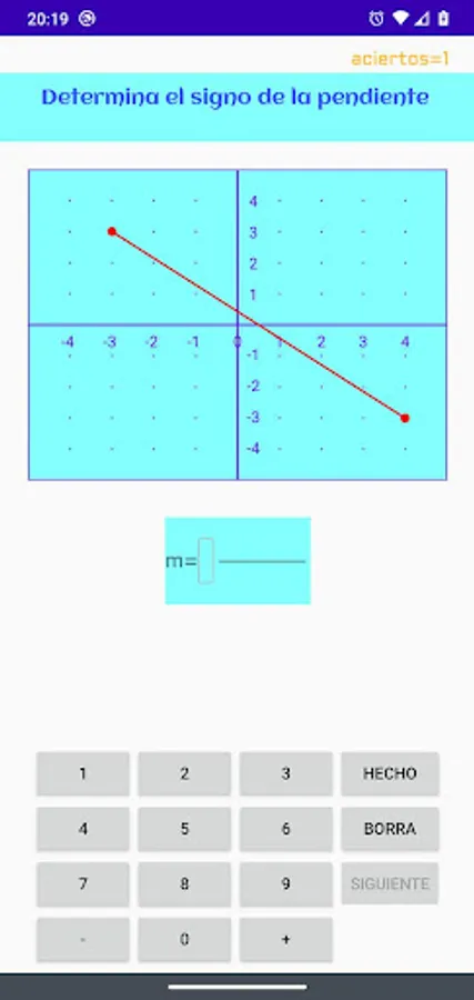 Line segments are graphed on a Cartesian plane and the user is asked to determine the value of the corresponding slope