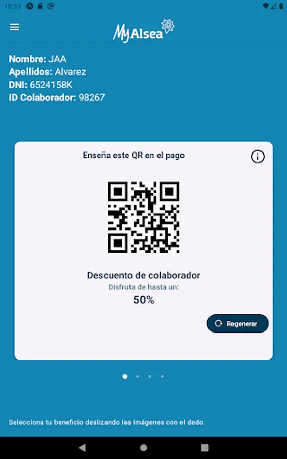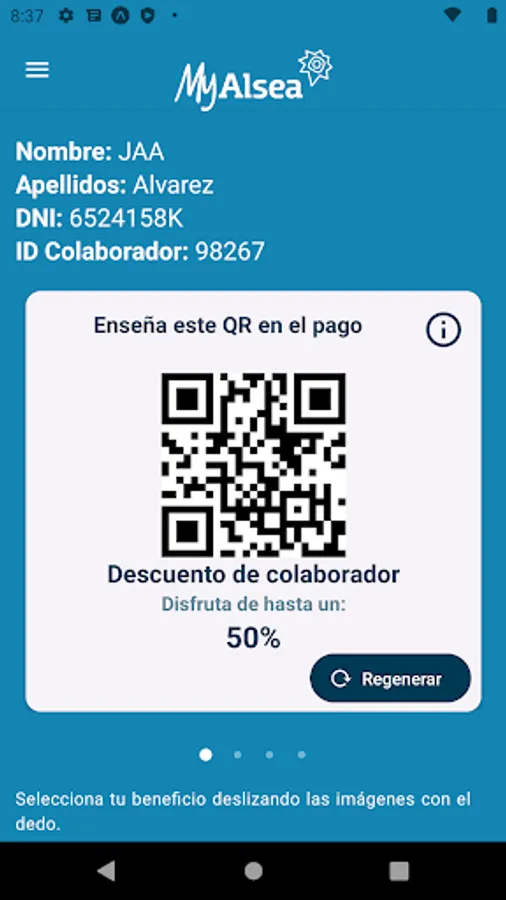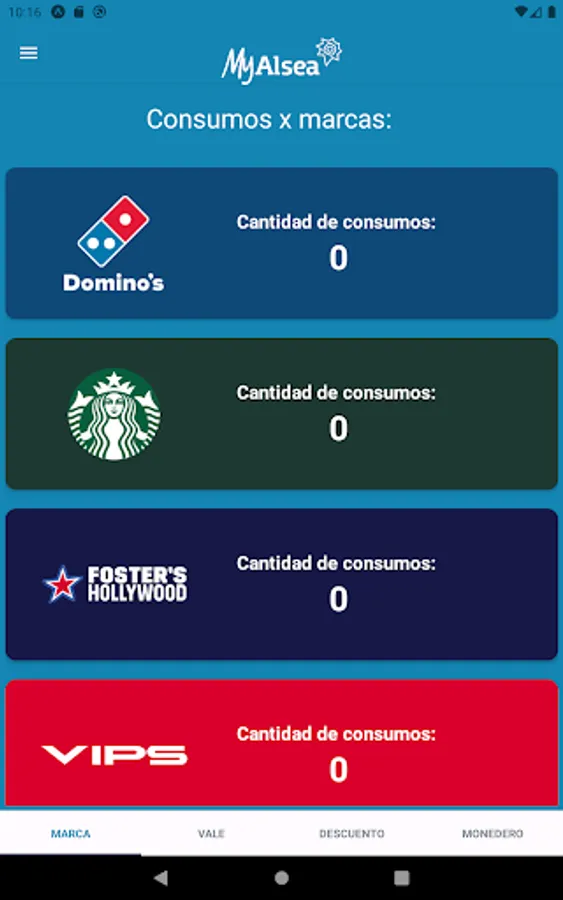 The application allows obtaining and consuming employee benefits in the Alsea restaurant network through digital coupons using QR codes.