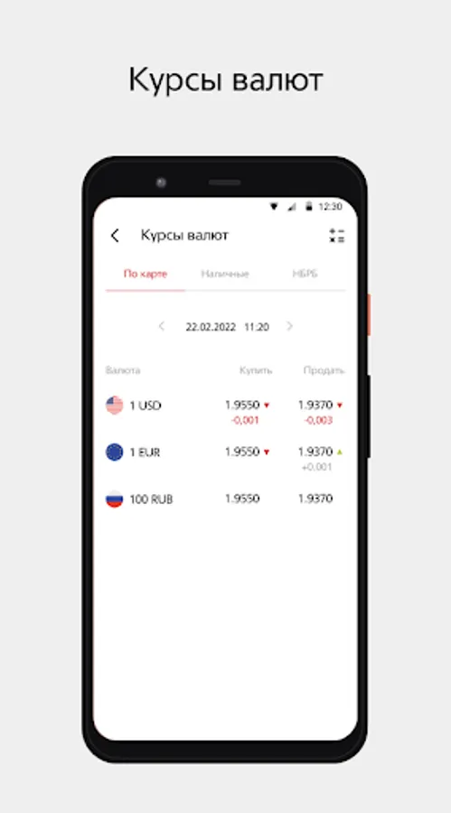 - Actual exchange rates for cash currencies, for payment cards and the NBRB.