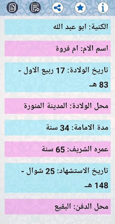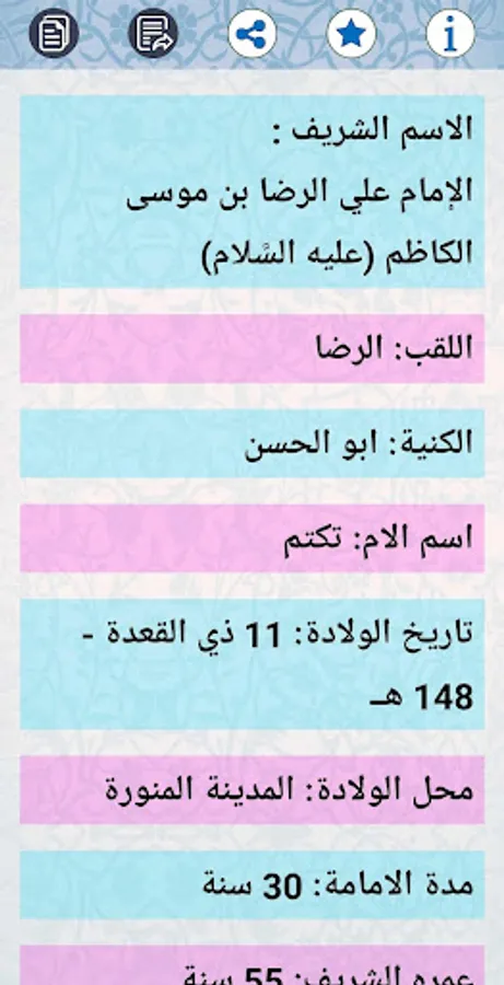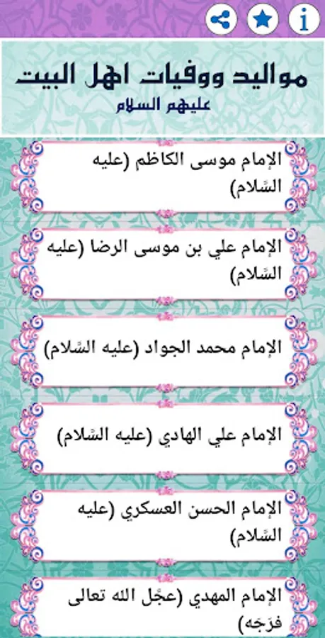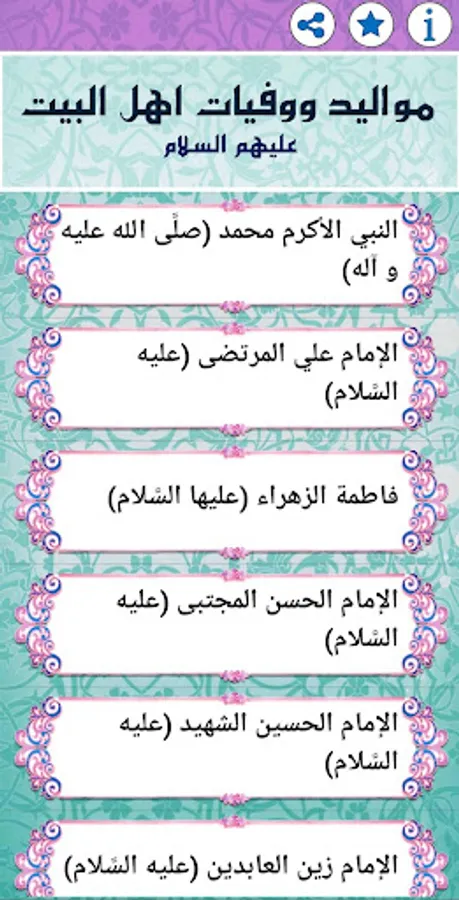 The application contains details regarding the births and deaths of the infallible imams and other details such as the place of birth and the exact dates of births and deaths.