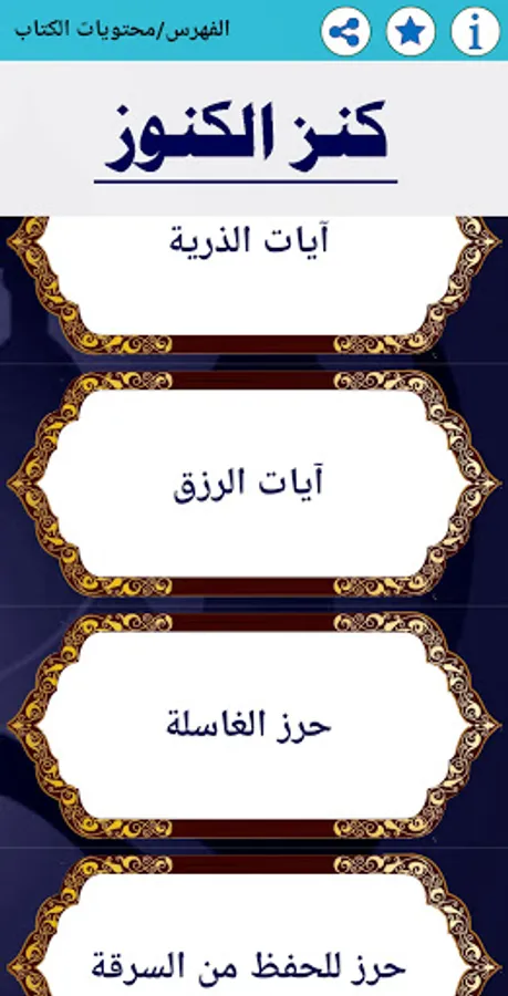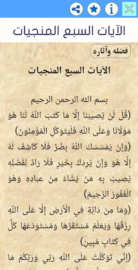 The application is simple, uncomplicated and light on tablet devices, as it does not take up space in memory due to its small size and the greatness of its words. It is a unique gem and a treasure of the treasures of the world and the hereafter.