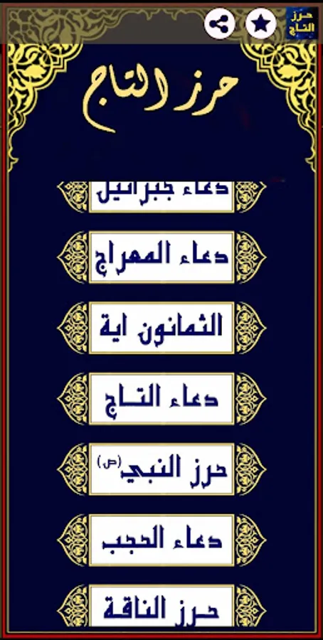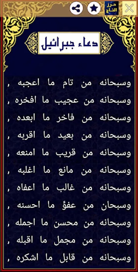 The prayer of Gabriel, the score of the she-camel, the score of the greatest Prophet, peace and blessings be upon him, the eighty verses, the supplication of the cup, the supplication of the Ascension, the veil and the crown.