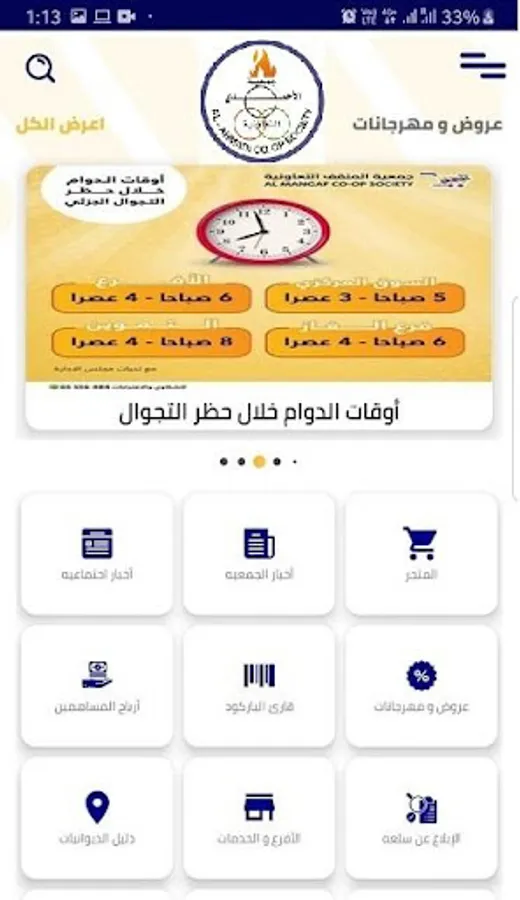 The official release of the Ahmadi Cooperative Society, through which the association’s administration endeavors to provide its best services to the shareholders and leaders of the association through this program, which includes: