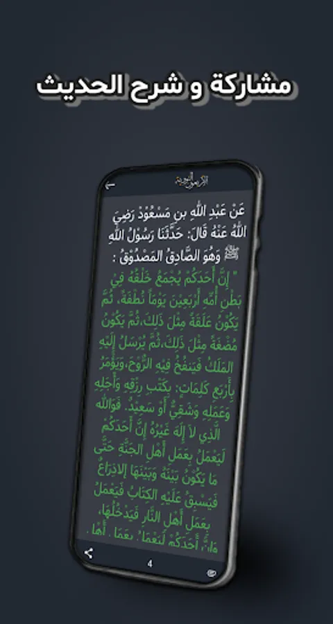 In this application that contains the hadiths of this book, there are several advantages, including the modern design and its containment of three fonts (Thuluth - Naskh - Ruq’ah). It is possible to change the font size, and each hadith has an explanation with it.
