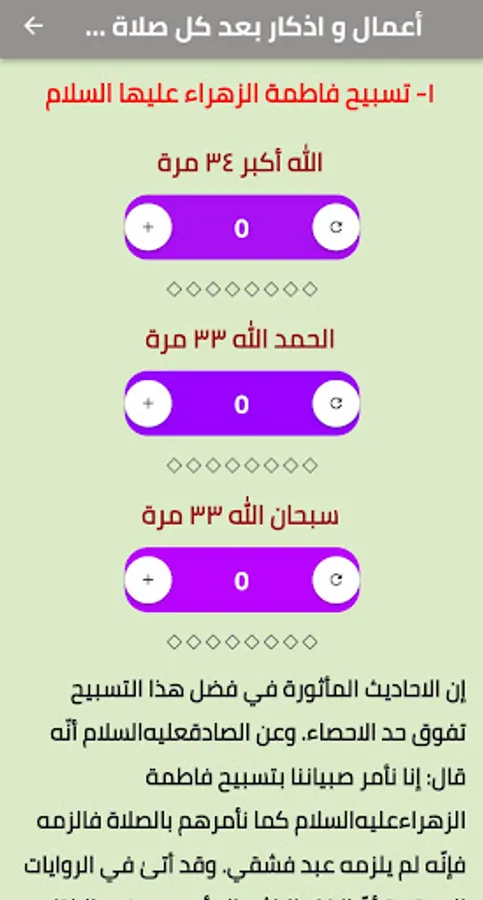 The Shiite Daily Remembrances application contains actions and comments after each obligatory prayer