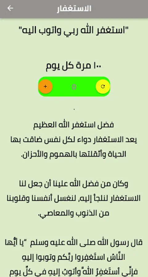 The application contains the daily dhikr at each section, a counter for the daily dhikr and contains an electronic rosary as well
