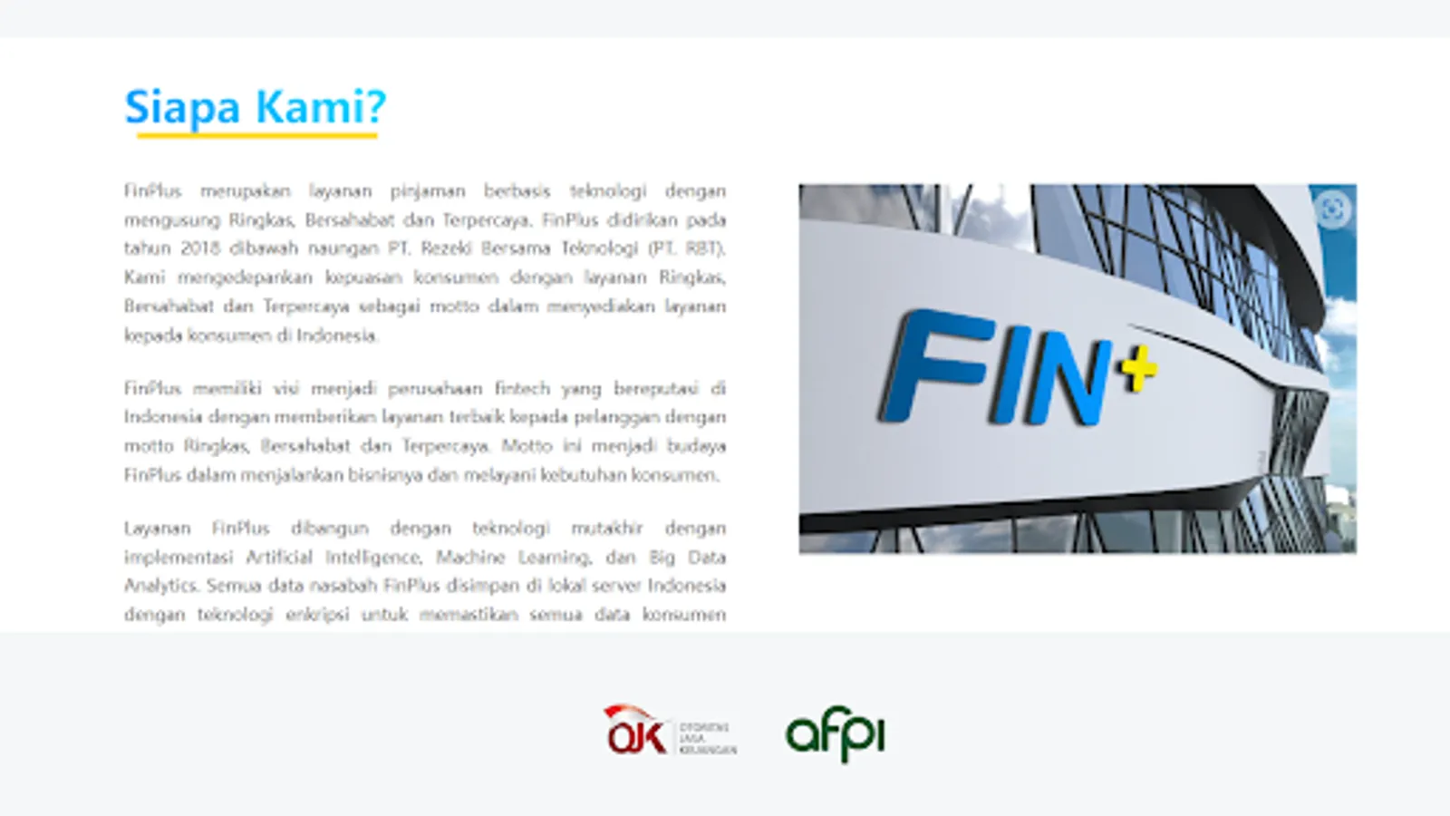 FinPlus is an online loan application that offers convenience and comfort for its users to get cash in a short time. This application can be accessed easily and quickly via mobile devices such as smartphones.