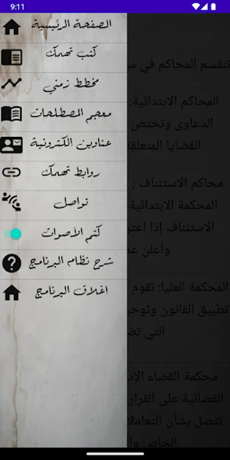 The Omani Judiciary Guide Program is a program that explains the judicial system and the functioning of the courts in the Sultanate of Oman, as well as some issues related to the laws in the Sultanate of Oman. The program contains: